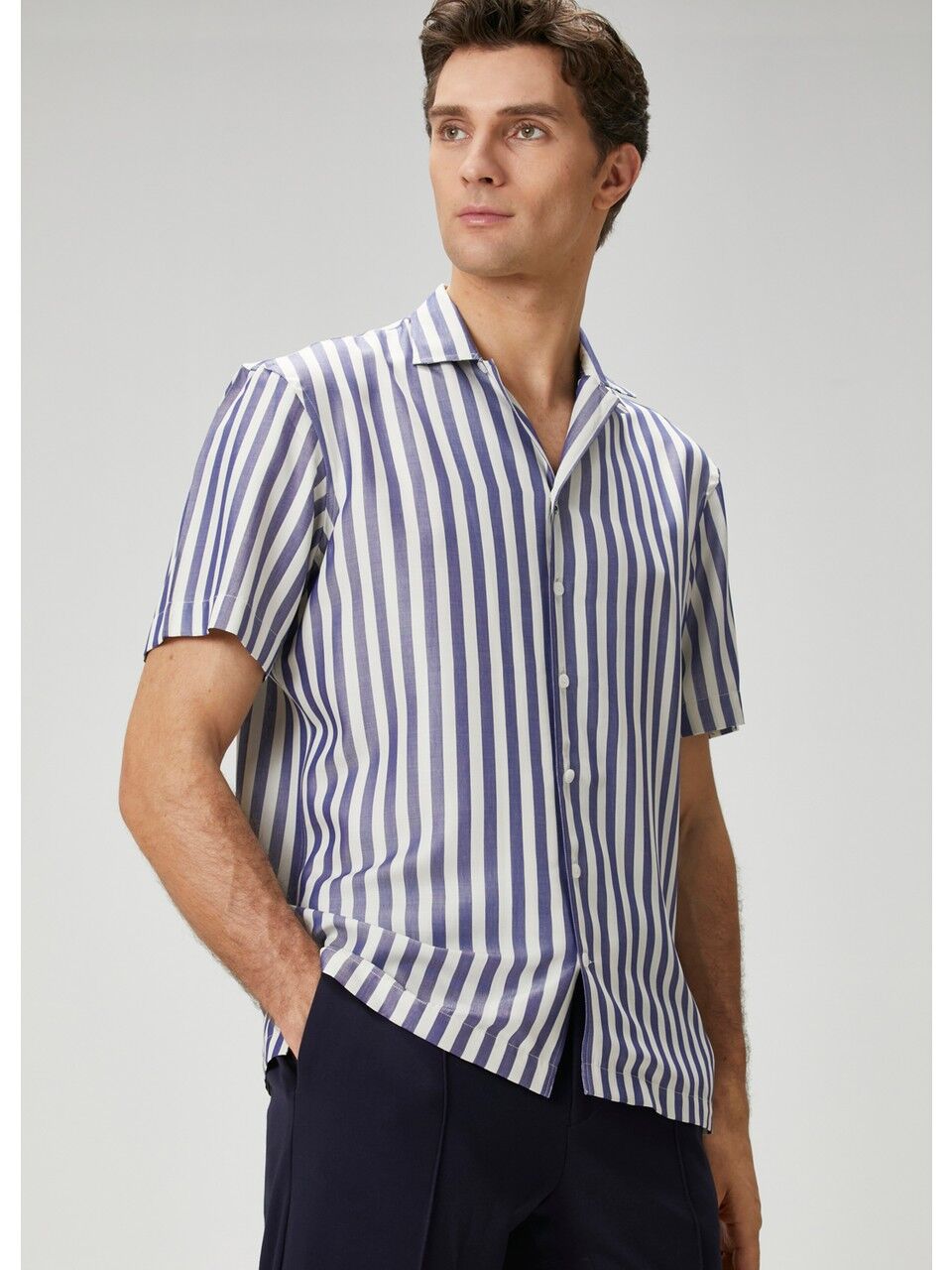 Leisure Fit Mavi Beyaz Çizgili Gömlek